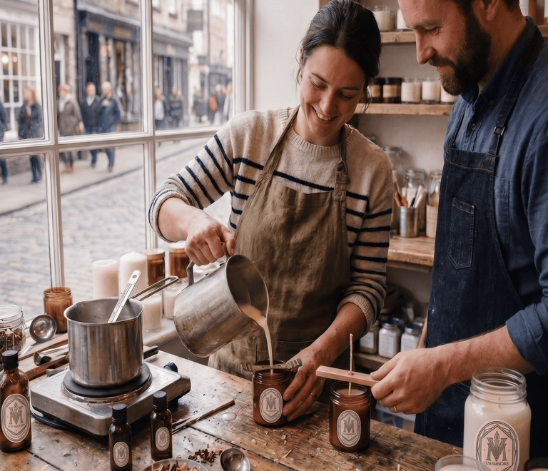 Hand-poured candles with rich, lasting aromas.